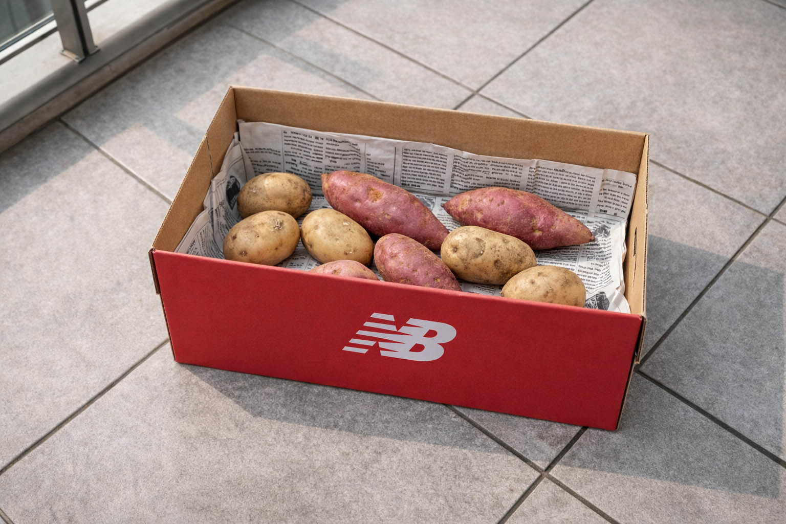 신발 상자 안에 신문지를 깔아주면 채소가 바닥에 부딪혀 멍드는 것을 막아주고 습기를 흡수해 감자, 고구마와 같은 채소를 싱싱하게 보관해 줍니다.