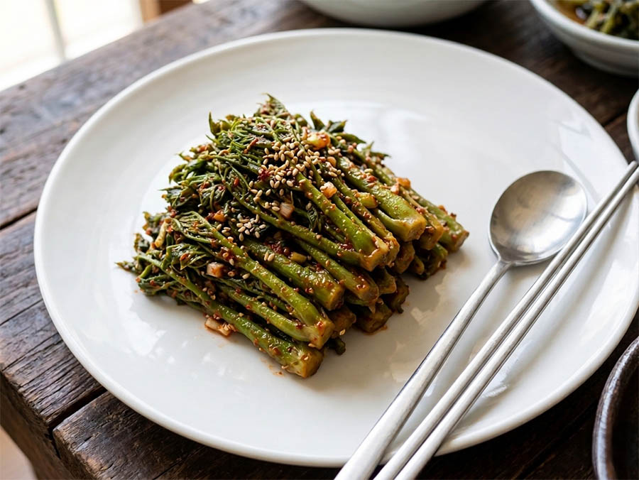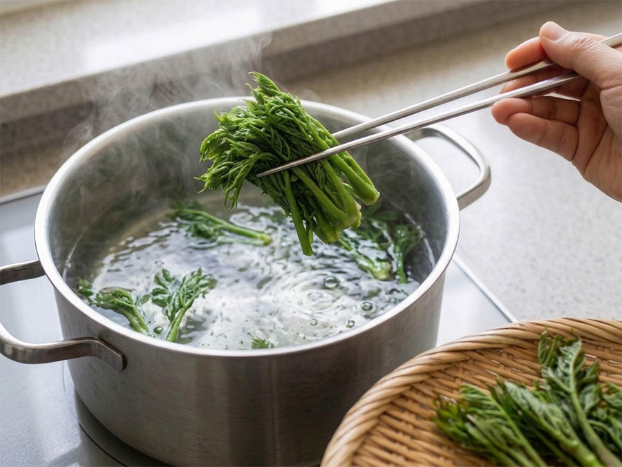 ② 밑동 데치기: 끓는 소금물에 밑동부터 넣어 20~30초 데치기
