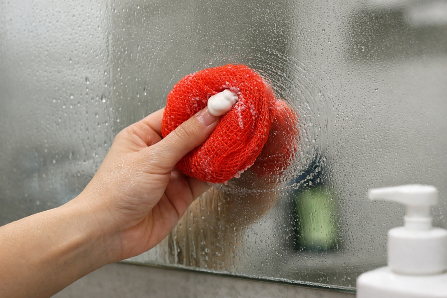 욕실 거울은 물방울 자국과 비누 성분이 겹치면서 금방 뿌옇게 보이죠.